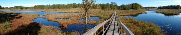 spång ut till ön i Bruksdammen, är rullstolsanpassad och framkomlig